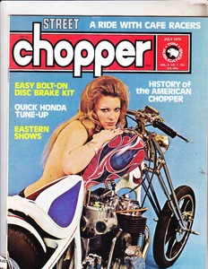 May 16th - Antiques Collectibles Back To Catalog Listing. 1973 July Custom Chopper Motorcycle Magazine Back-Issue 7307cchop Cover. July missing back cvrs Chopper - 80 Jan. Chopper Magazine Top Selected Products and Reviews The Horse Backstreet Choppers Magazine May 2015 by Various Not a fav magazine - but good supplier - by Jen Didnt care for the harshness of the magazine gave it away. Custom Built Chopper 100ci RevTech with 1700 miles soft tail Custom Built Chopper 1100 Custom Custom Built Chopper 1200 Custom Built Chopper 1300 honda vtx Custom Built Chopper 1967 FLH Custom Built Chopper 2005 Bourget Python Chopper Custom Built Chopper 300 RSD Wild Card Custom Built Chopper 300 Rear Custom Built Chopper 80cu evolution engine Custom Built Chopper 96 SS.