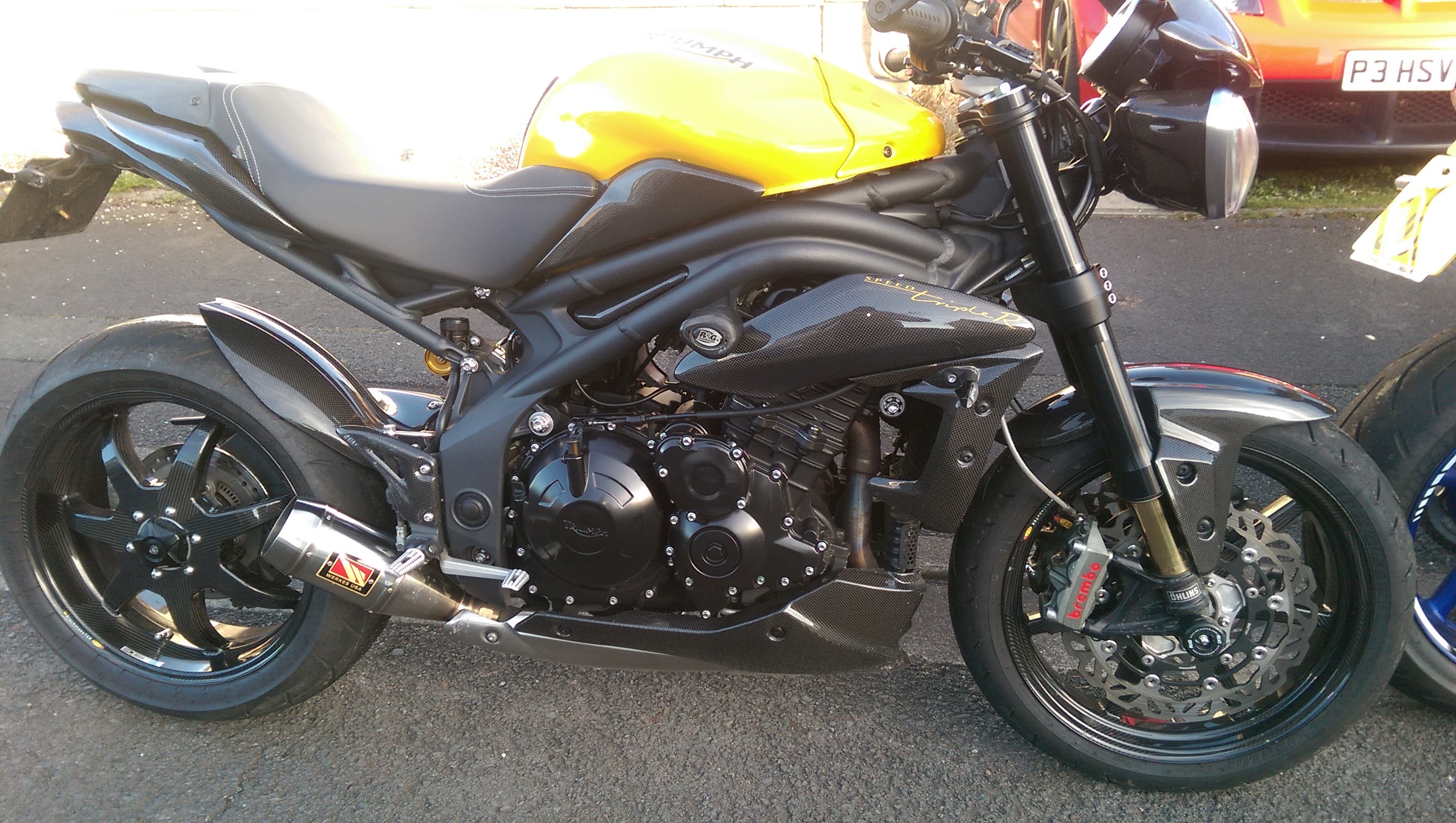 Triumph Speed Triple Electronics. Performance lightness and technology without sacrificing style and unmistakeable design. Reducing huge amounts of weight when compared to stock wheels these multi directional forged wheels are unique in manufacture and offer a perfect compromise between weight reduction performance and lifetime of the wheel. The Triumph Speed Triple is the British brands all-conquering large capacity naked sportsbike. In 1994 the reborn Hinckley Triumph became one of the first production motorcycles to embrace the new streetfighter style which was essentially a modern sport bike or race replica motorcycle but without the aerodynamic plastic fairing. Lap around the block.